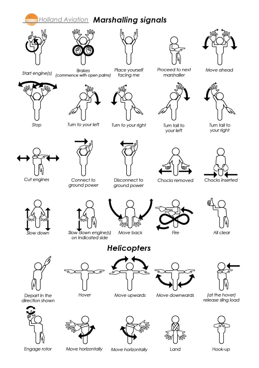 Holland Aviation wanted to add a visual guide to their product, explaining which signals you might encounter or use yourself at an airport or heliport, and what they mean.